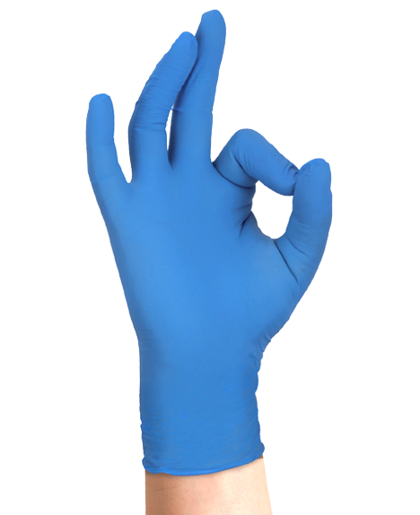 - Guanti monouso in nitrile, senza polvere con processo di clorinatura “on-line” (immersione in bagni di cloro).